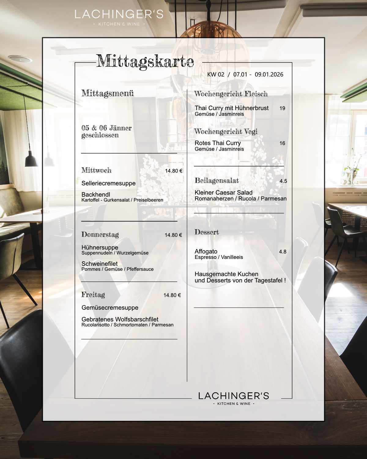 Erleben Sie unvergessliche, kulinarische Highlights und reservieren Ihre genussvolle Auszeit in Lachinger's Kitchen & Wine gleich online.
