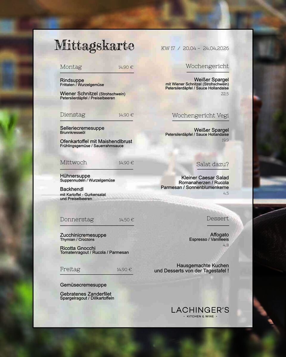 Lachinger's Kitchen & Wine in Schärding an der Silberzeile 13 im ersten Stock. Wo saisonale & regionale Spezialitäten auf kulinarische Leckerbissen aus aller Welt treffen.