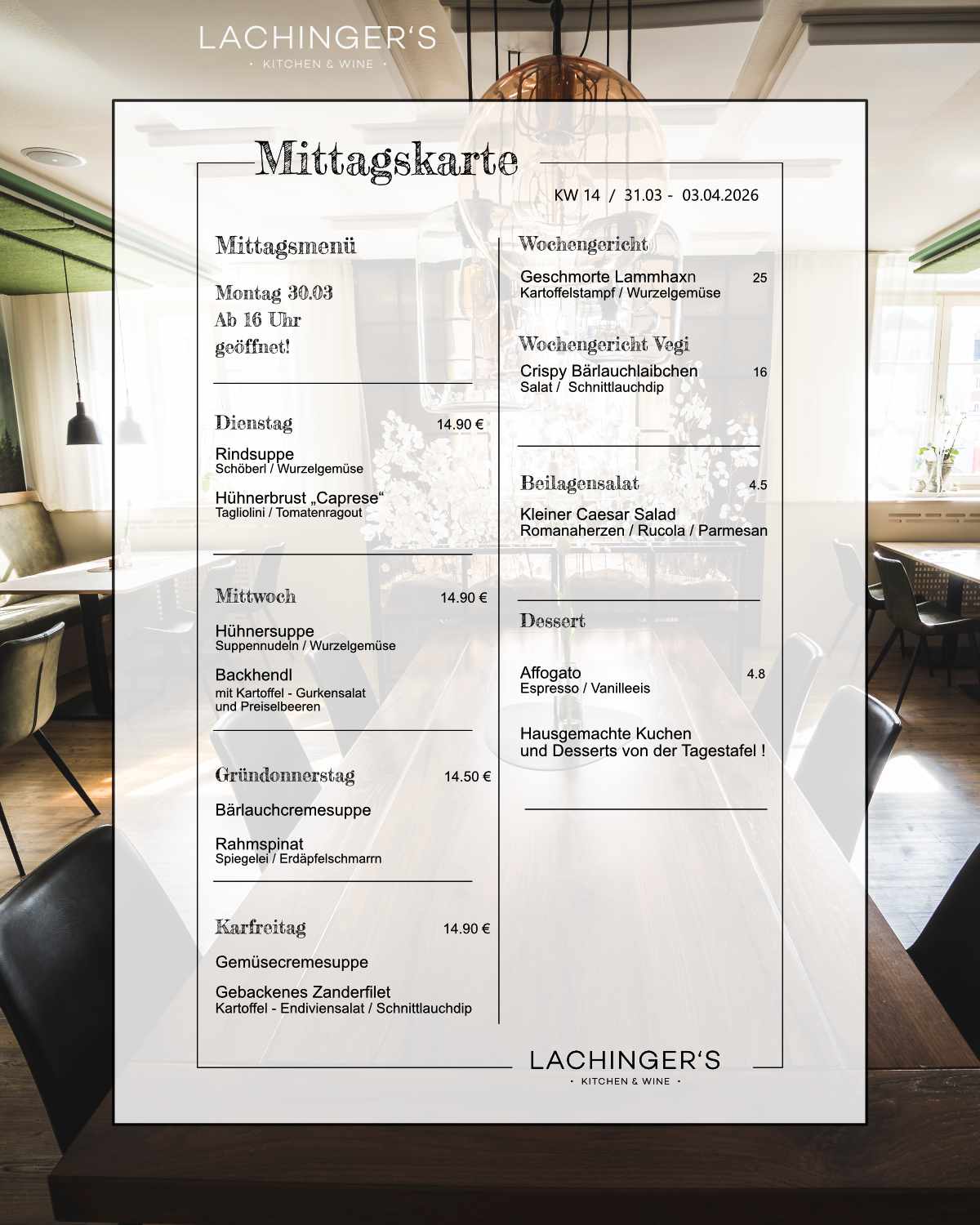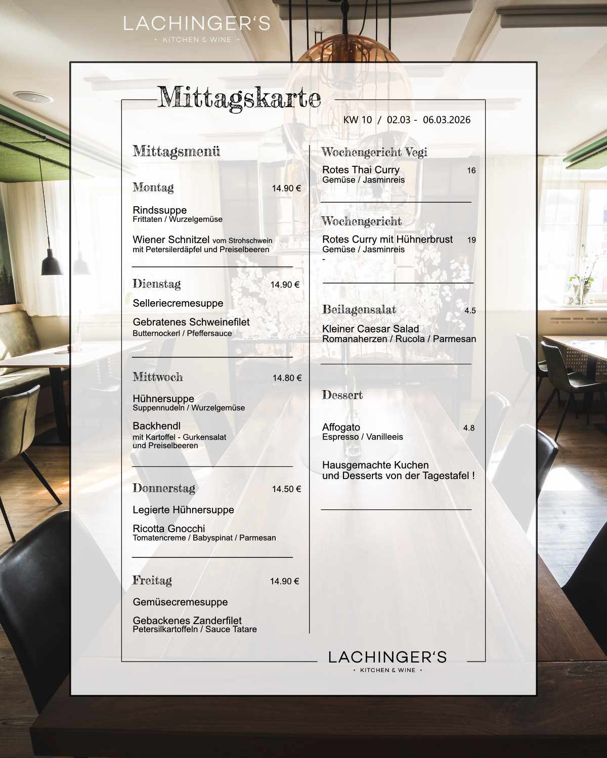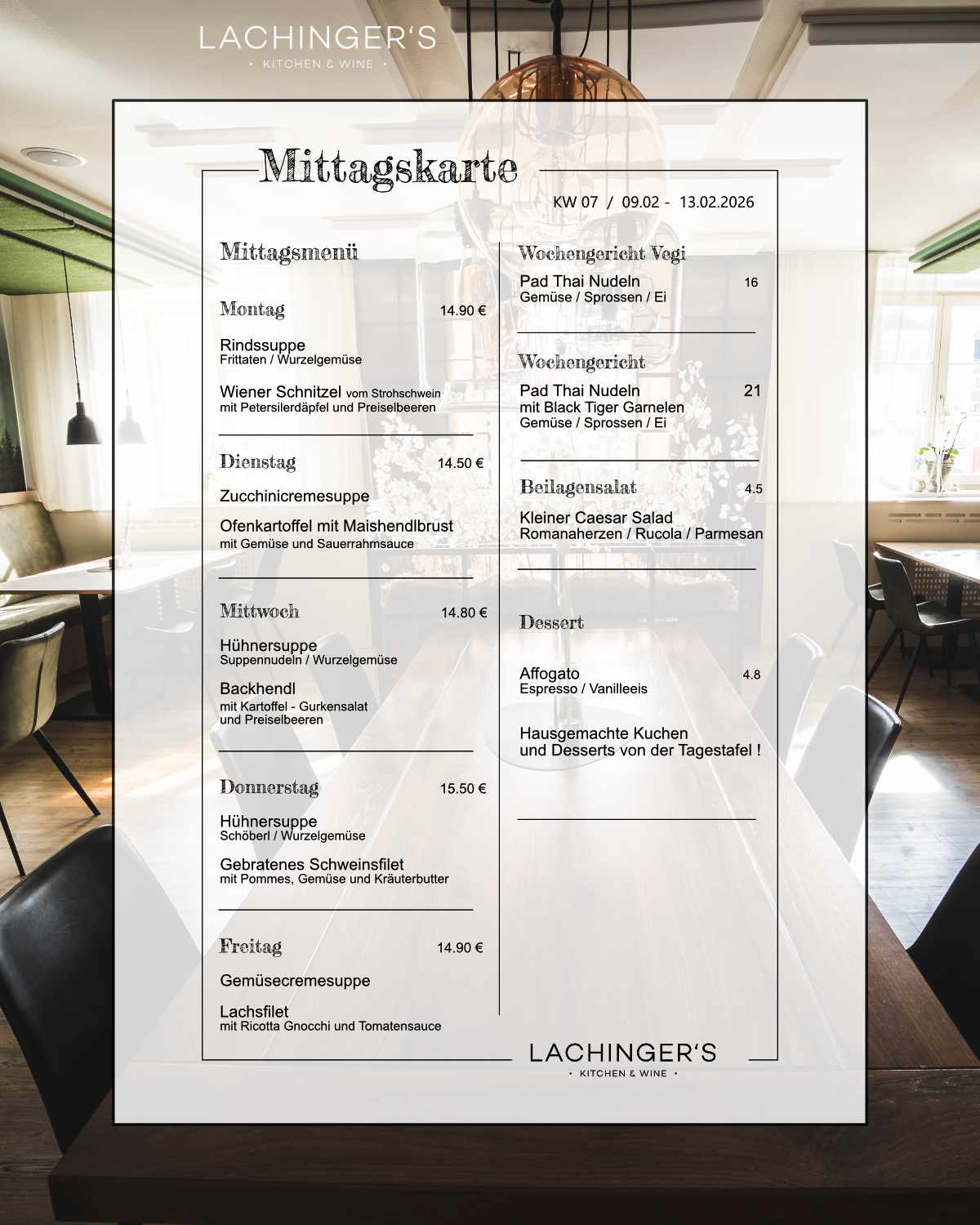 Erleben Sie unvergessliche, kulinarische Highlights und reservieren Ihre genussvolle Auszeit in Lachinger's Kitchen & Wine gleich online.