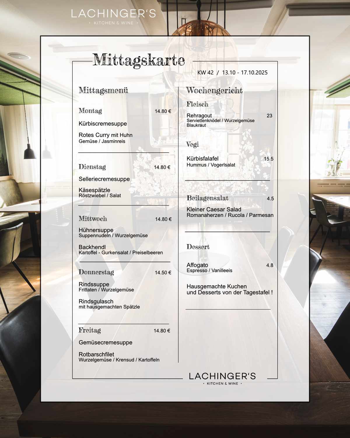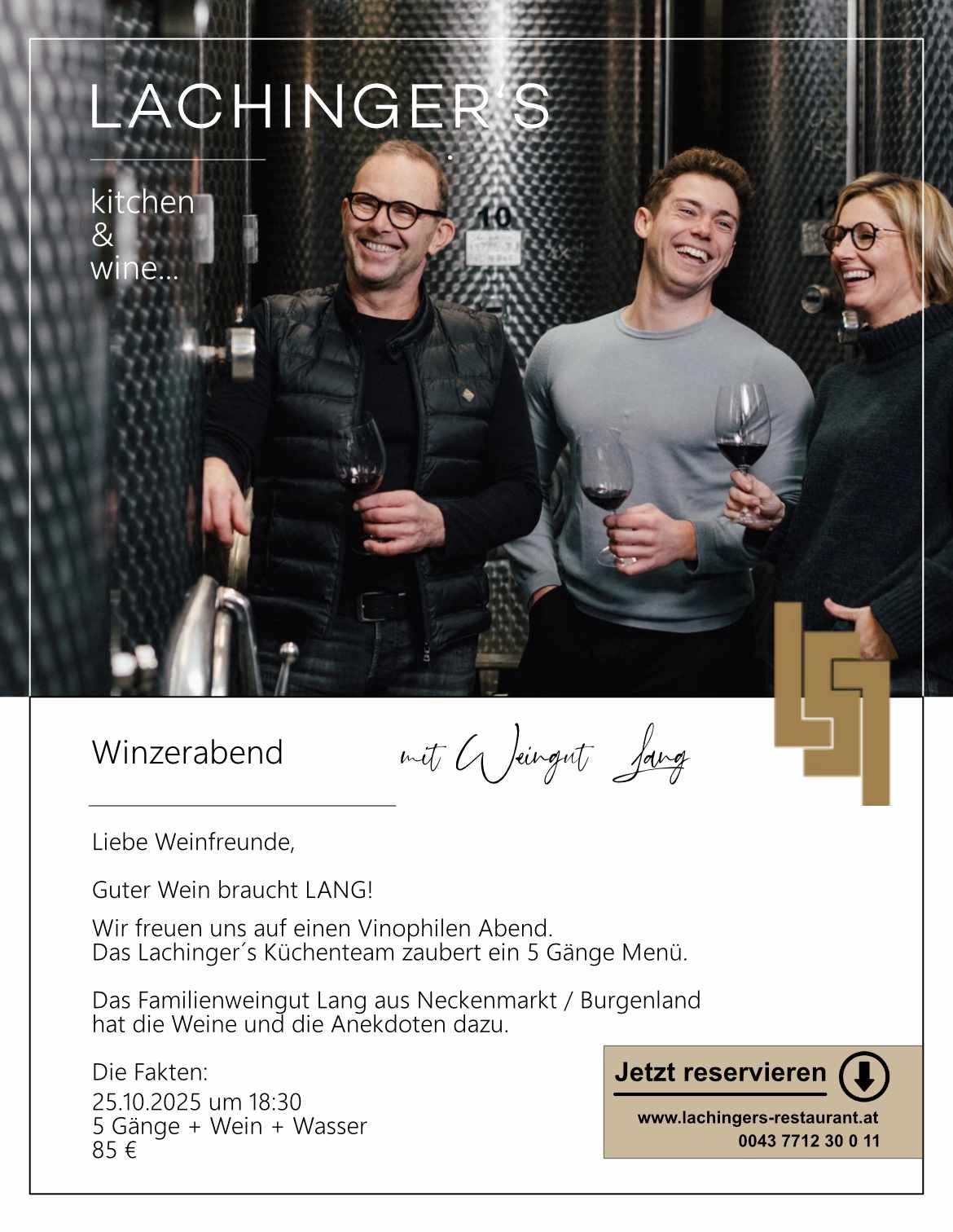 Erleben Sie unvergessliche, kulinarische Highlights und reservieren Ihre genussvolle Auszeit in Lachinger's Kitchen & Wine gleich online.